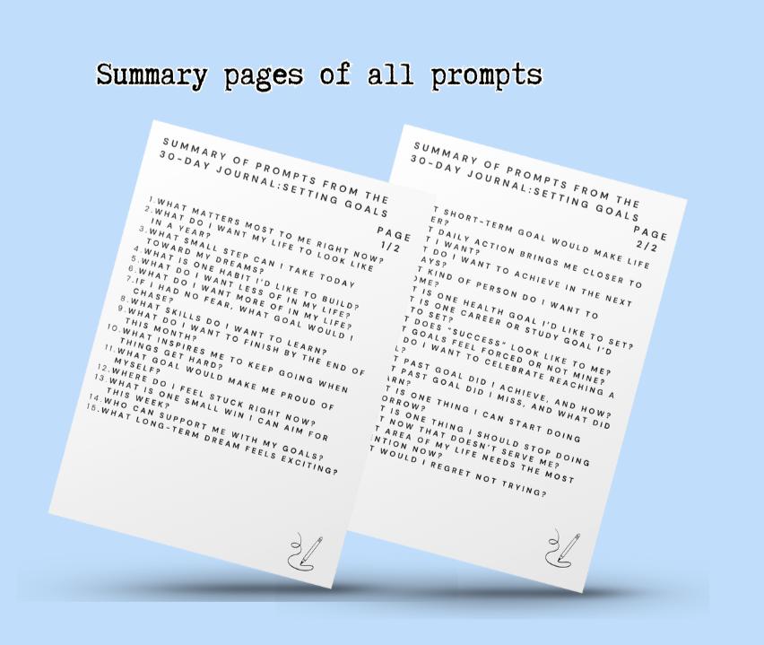 This journal is focused on goals. Setting goals gives you direction and helps you take action in a way that feels clear and achievable. Goals can be big or small, short-term or long-term, personal or professional. What matters is that they are meaningful to you. This 30-day journal is designed to help you identify your goals, define them clearly, and take steps toward achieving them with greater confidence.